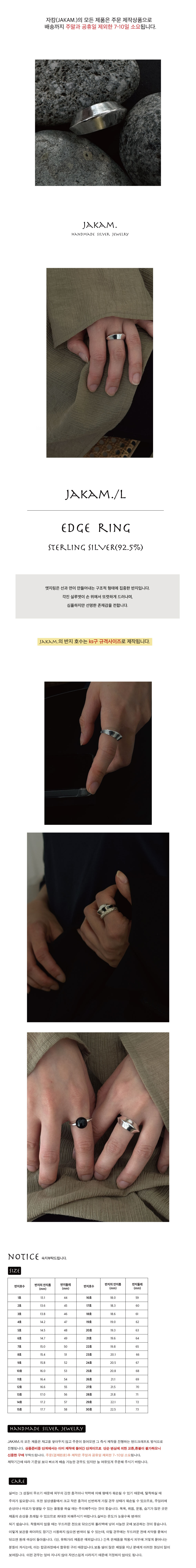 -사이즈옵션에 없는 다른 사이즈를 원하실 경우 구매처 게시판 or 카카오톡채널(JAKAM. jewelry)로 문의주시면 안내 도와드리겠습니다.